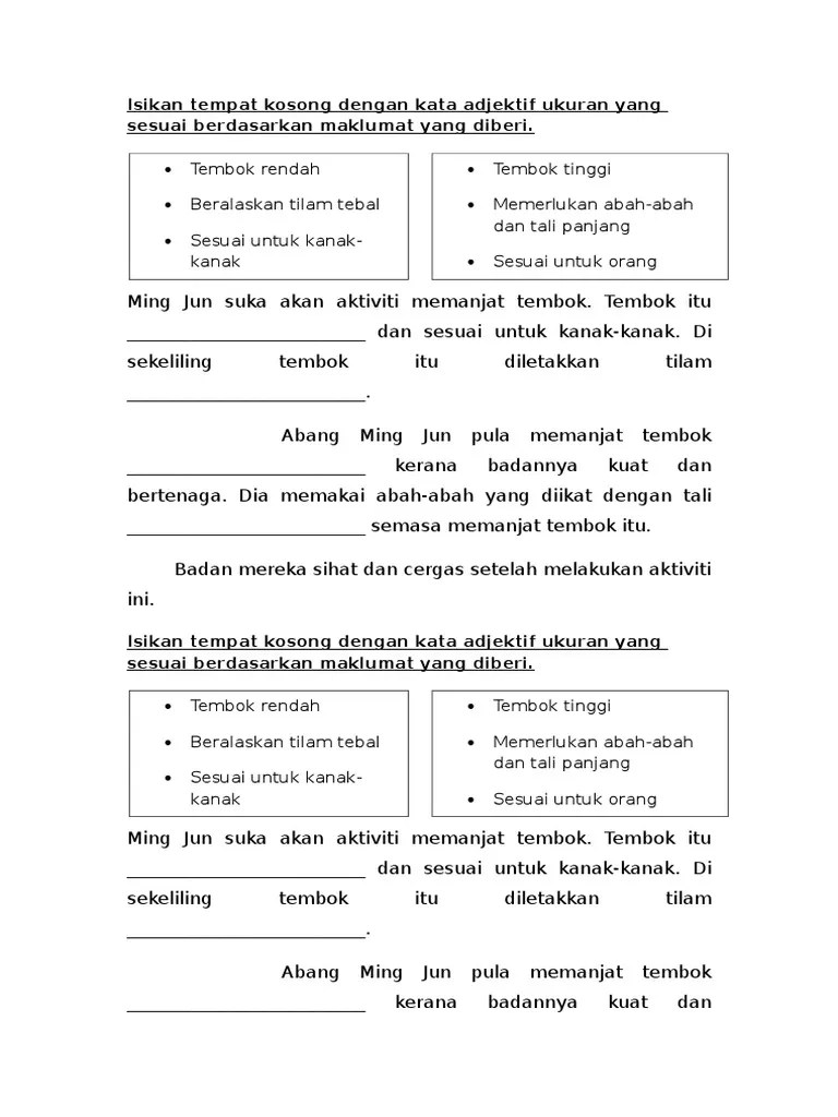 You can do the exercises online or download the worksheet as pdf kata adjektif tahun 2 latihan. You can do the exercises online or download the worksheet as pdf.